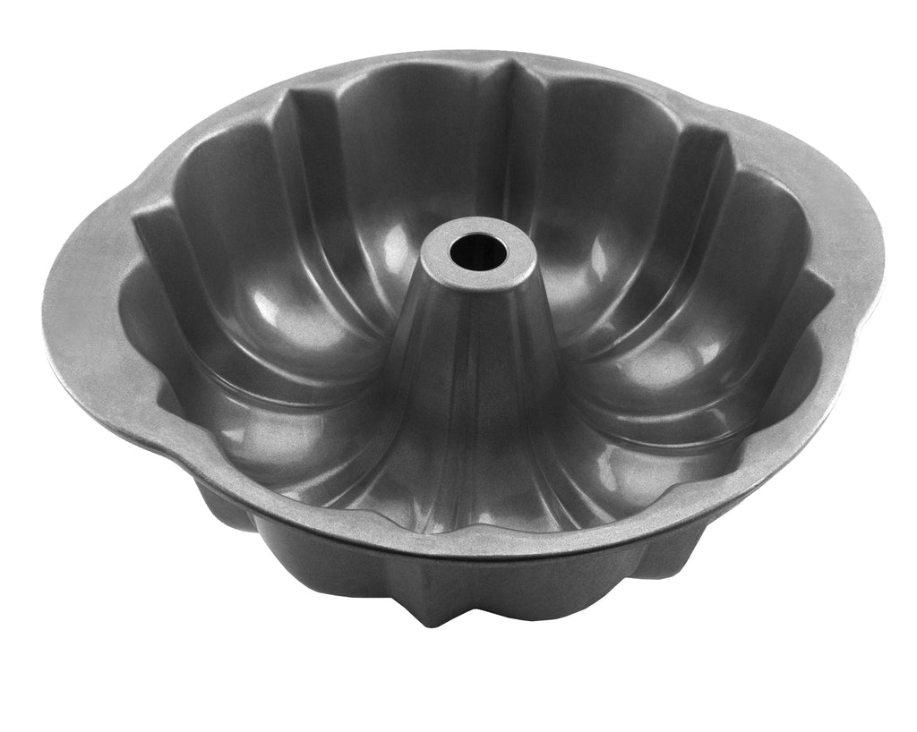 Mrs. Anderson's Cake Baking Pan, 10.5" dia. x 3-1/4"H, fluted, with premium quick release, non-stick PFOA coating, heat safe up to 450 degree F, reinforced beaded rim, .6mm thick professional quality carbon steel, silver