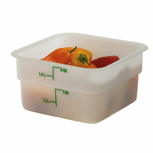 Food Container, 2 qt., 7-1/4"L x 7-1/4"W x 3-7/8"H, green graduation, polyethylene, dishwasher safe, resists stains & odors, natural white, NSF