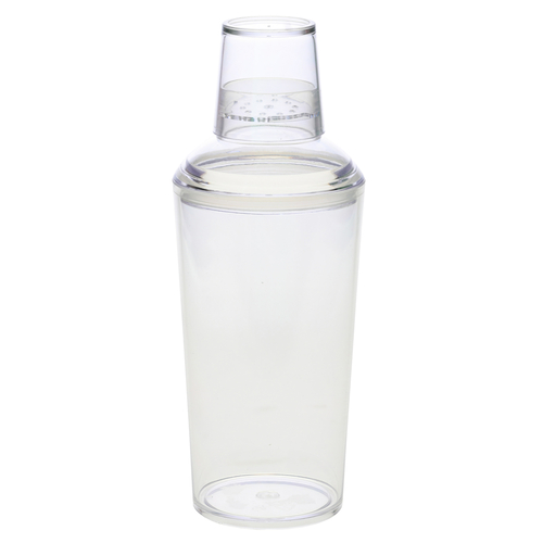 Cocktail Shaker, 27 oz., 3-piece set includes: shaker, strainer, and 3 oz. cap, dishwasher safe, break resistant, BPA free, SAN plastic, clear